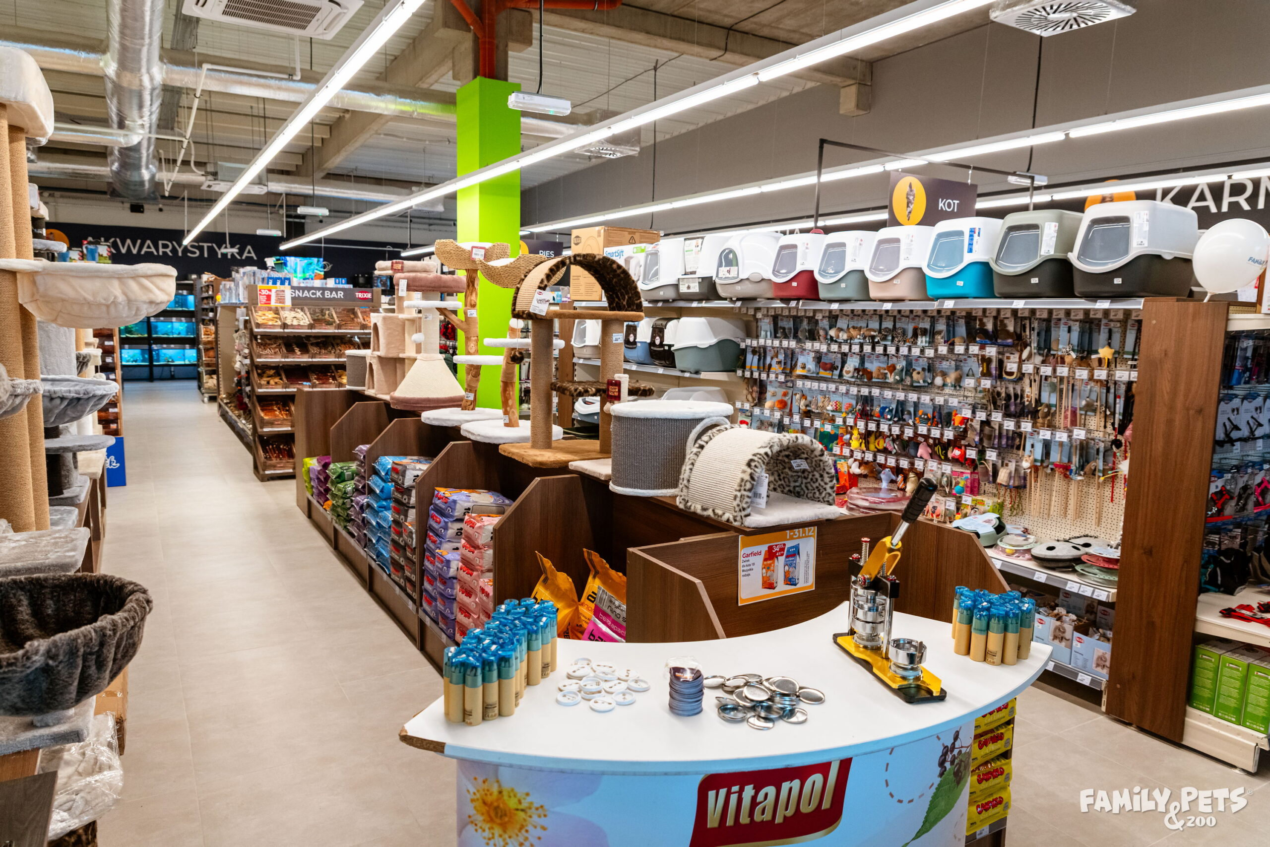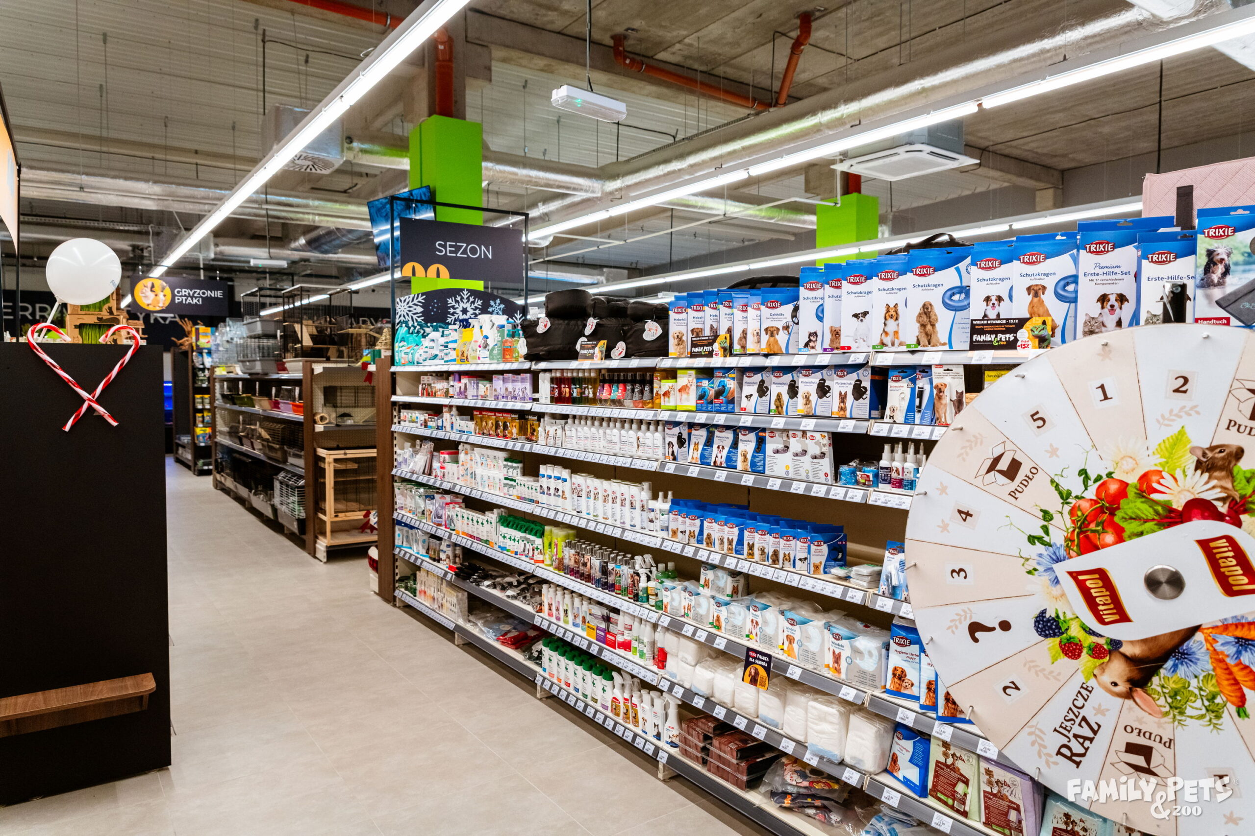 Nowy sklep Family Pets & Zoo oferuje nowoczesną, przestronną przestrzeń zakupową, w której klienci mogą znaleźć m.in.: